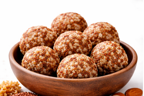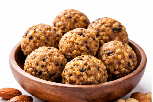 Our Dry Fruits Laddus are crafted using a rich blend of soft dates, figs, apricots, nuts, and super seeds — with no refined sugar added.